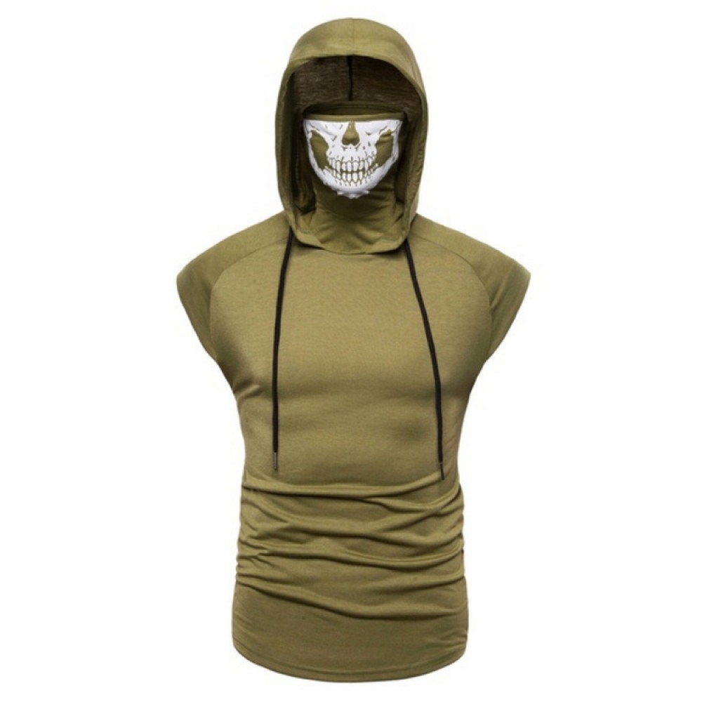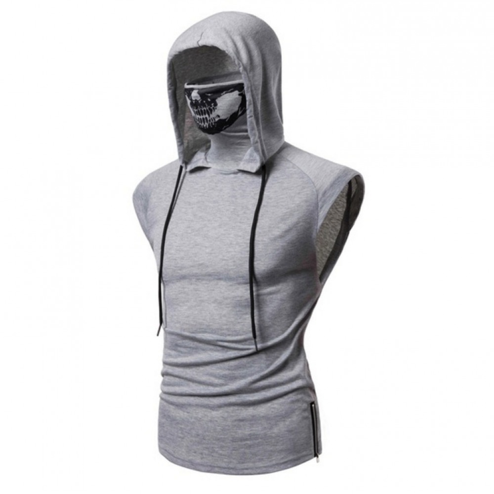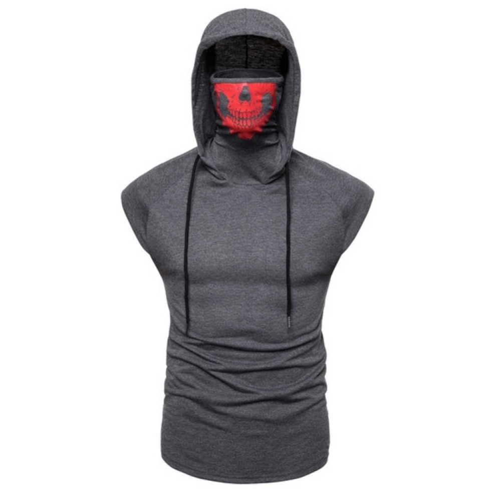 Male Skull Vest T-Shirt Plus Size Hooded Masked Fashion Sleeveless T-Shirt