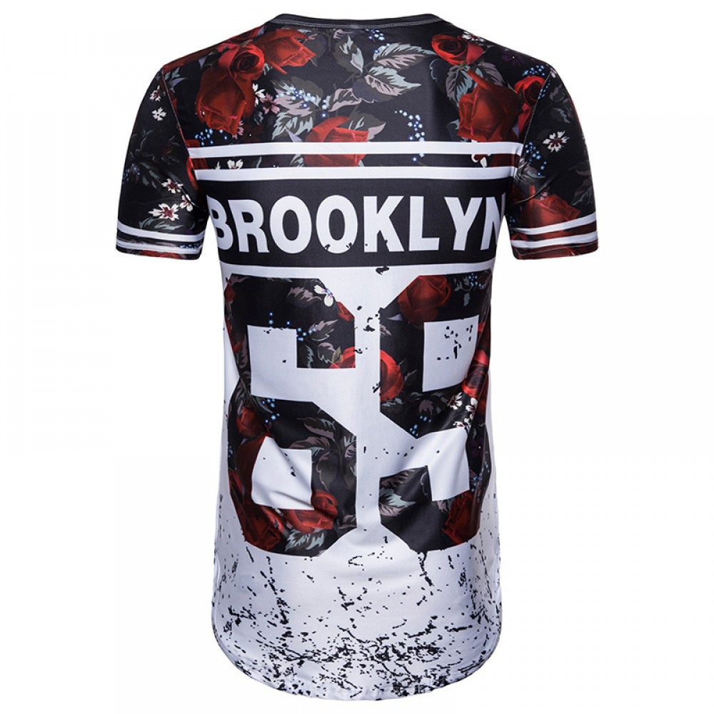 Summer Men's English Jacquard Fashion Hipster Hip-Hop Short-Sleeved T-Shirt