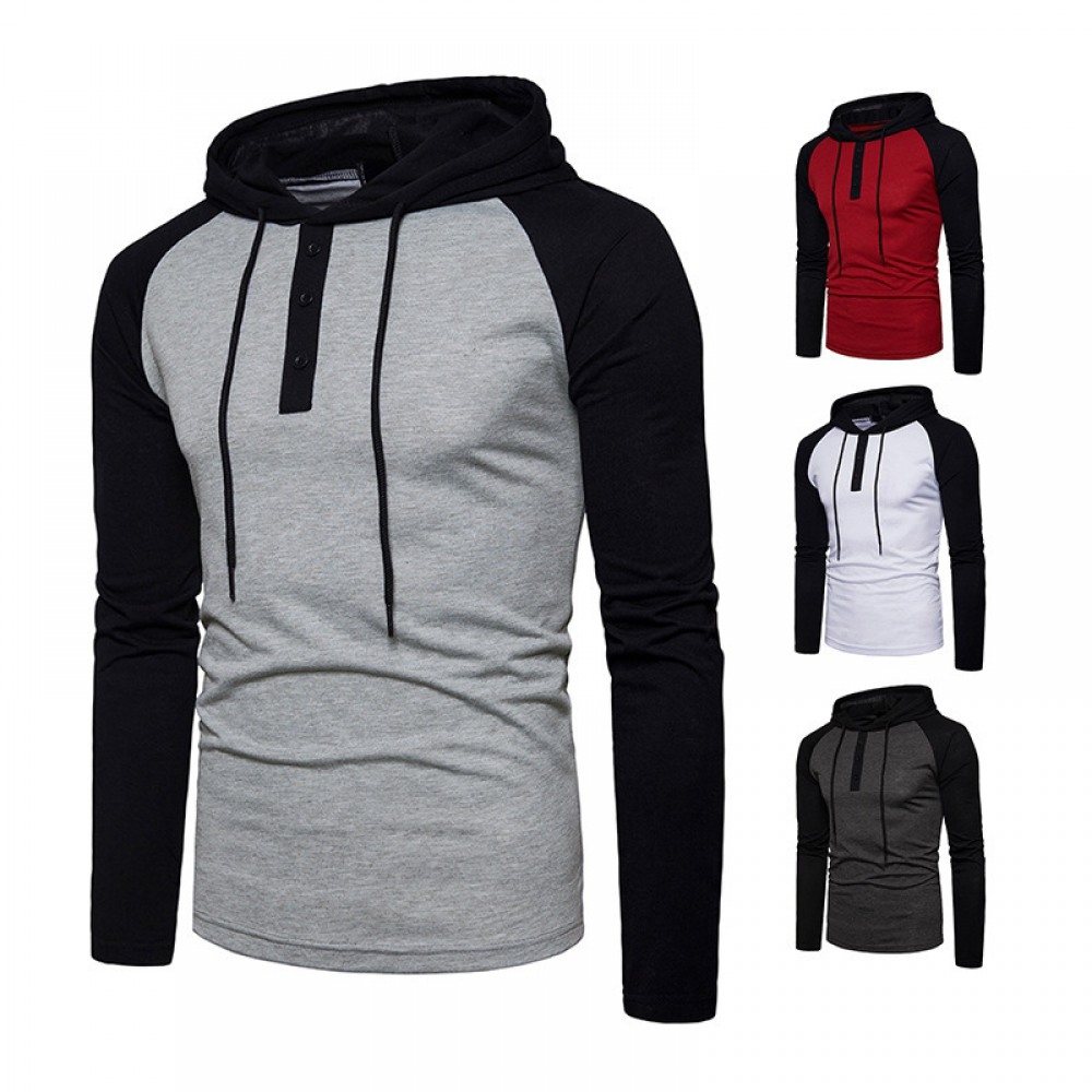 Men's Hip-Hop Access Control Color Matching Long-Sleeved Sports Hoodie Pullover