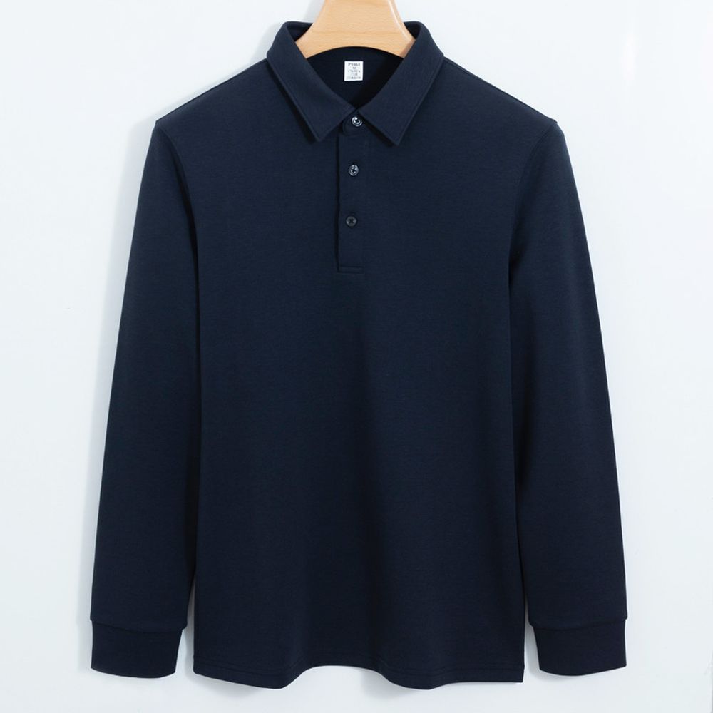 Men's Long-sleeved Polo Shirt with Thickened Cotton Collar