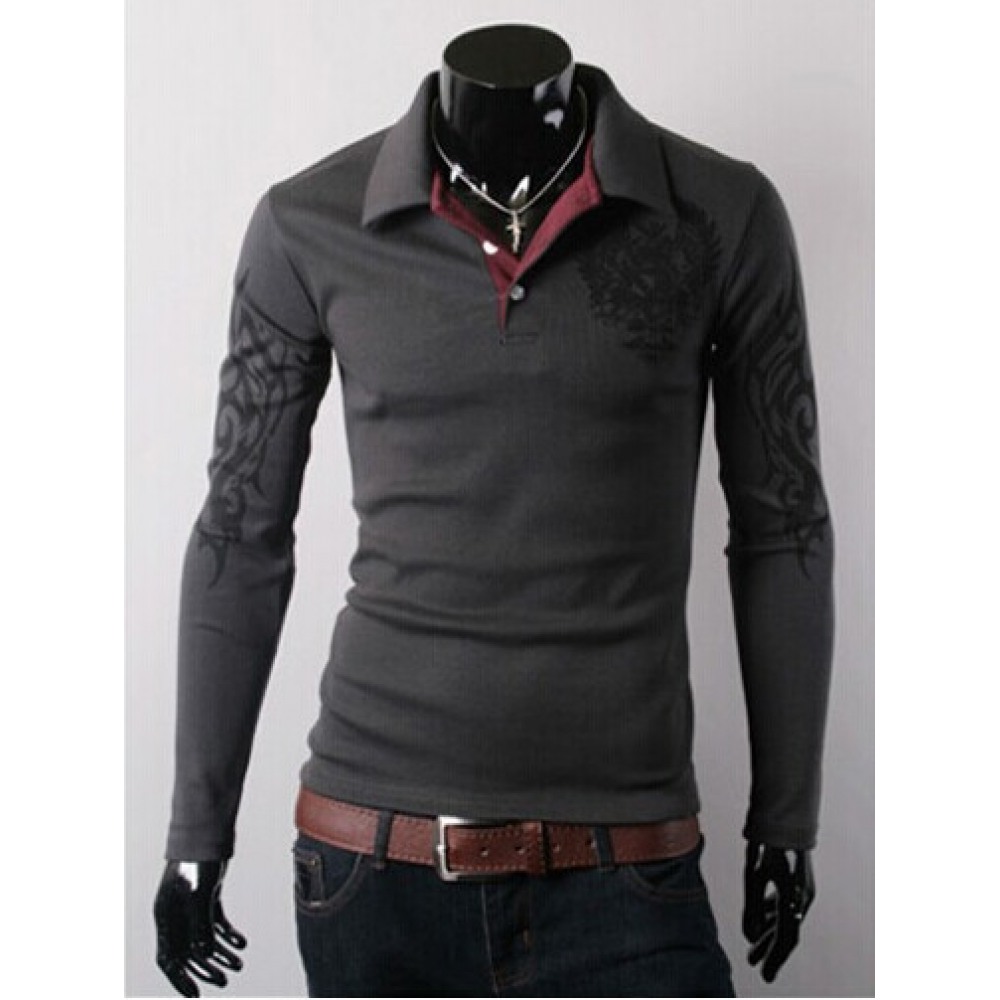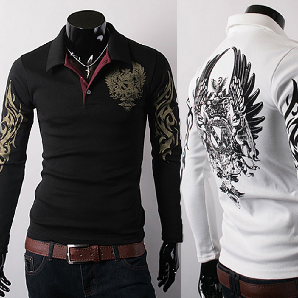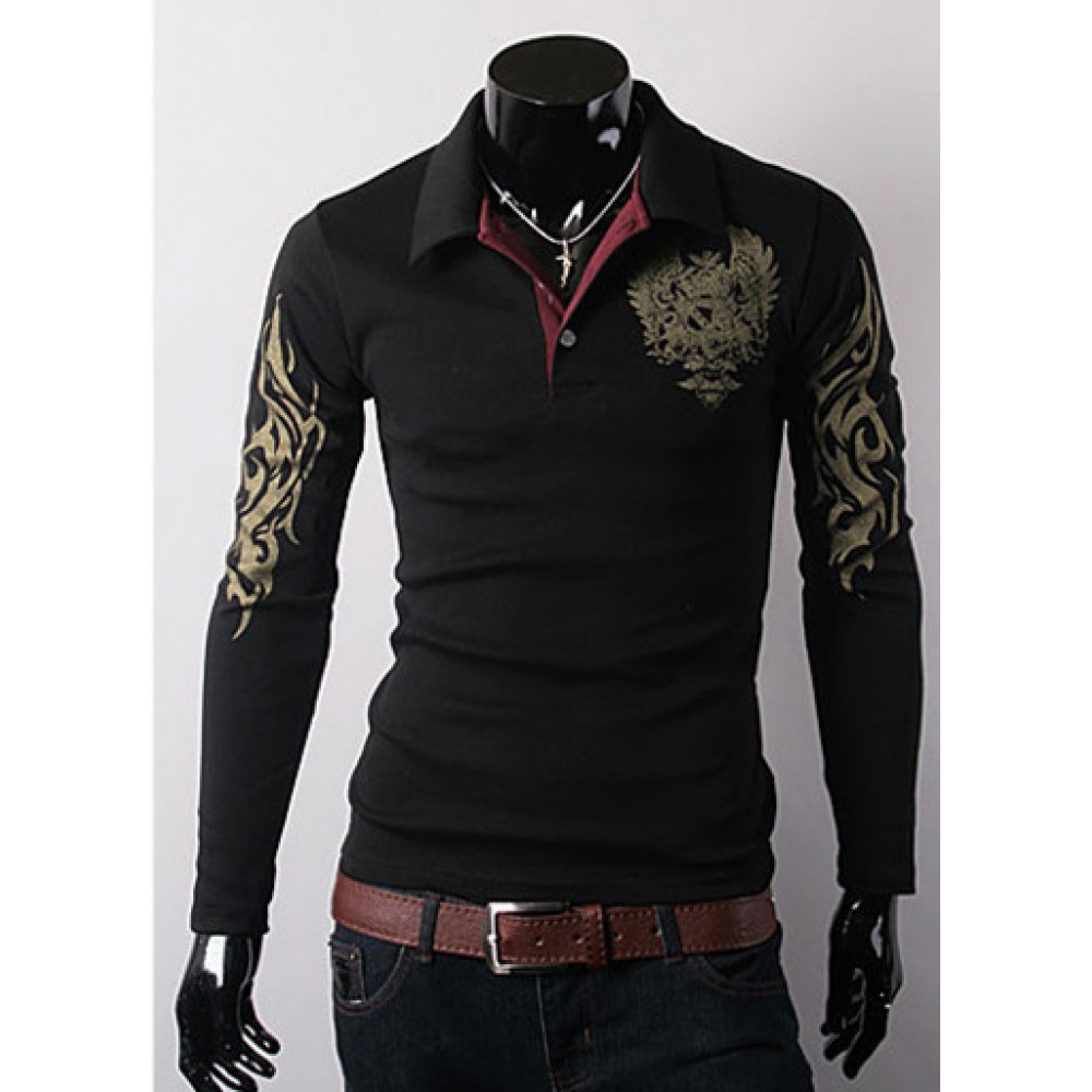 Men's Long-Sleeved T-Shirt Lapel Big Eagle Printing Casual Clothing