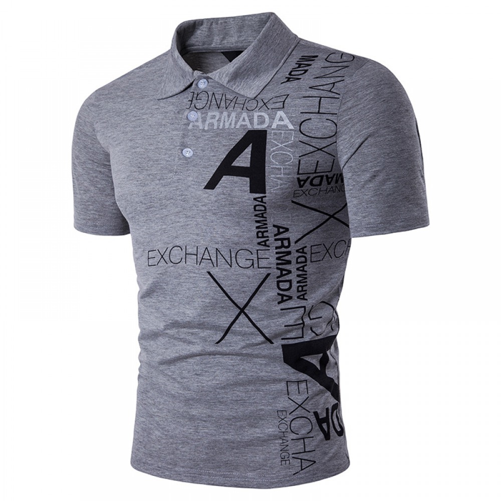 New Men's Style A Letter Printing Lapel Short Sleeve Large Size T-Shirt