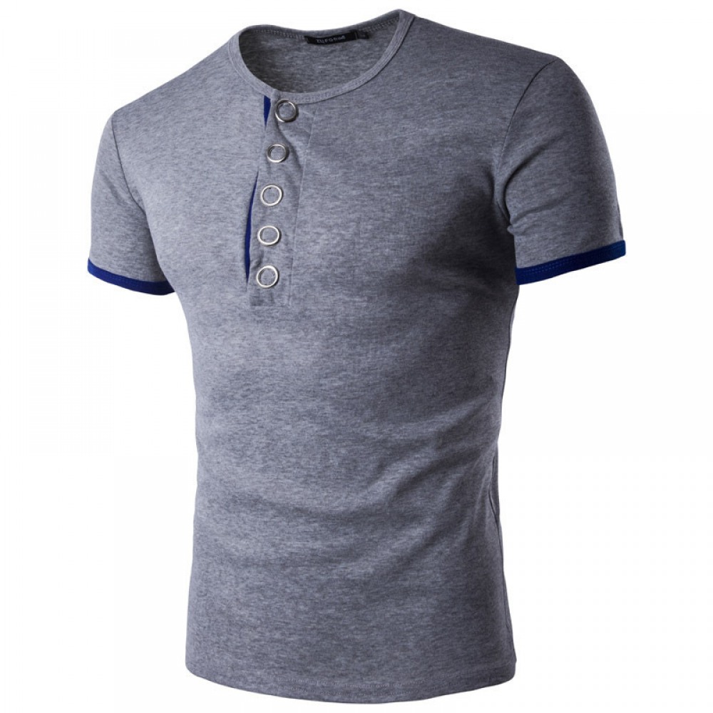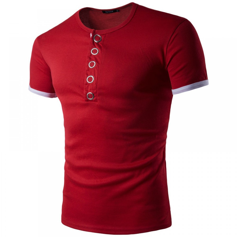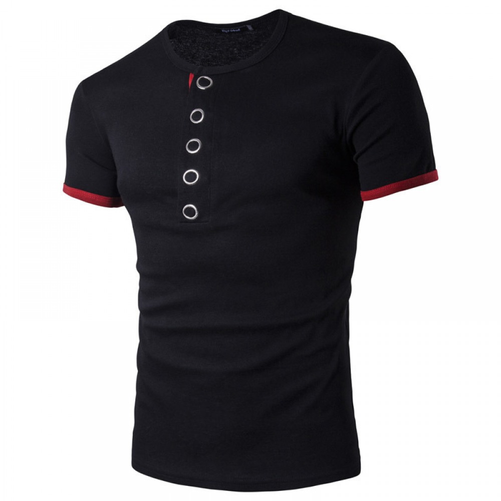 New Summer Men's Placket Knock Button Hit Color Short-Sleeved T-Shirt Casual Lapel Bottoming Shirt