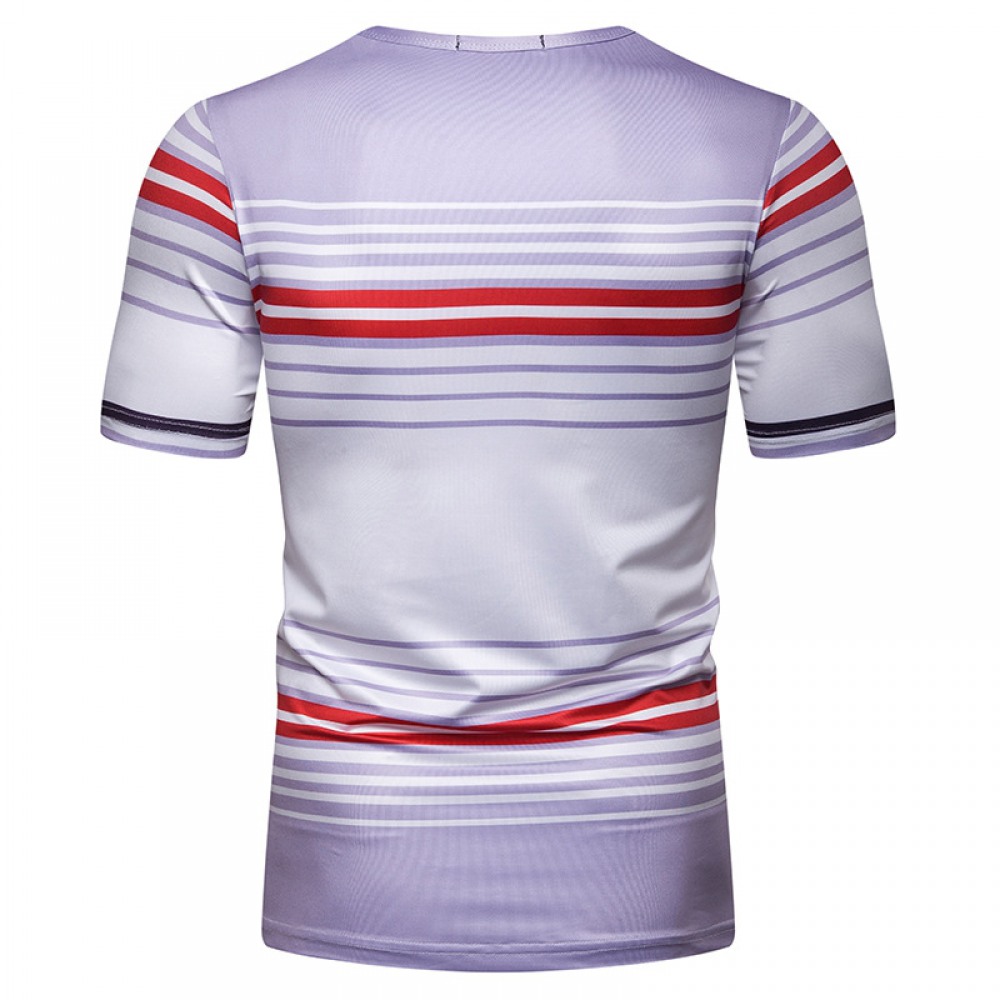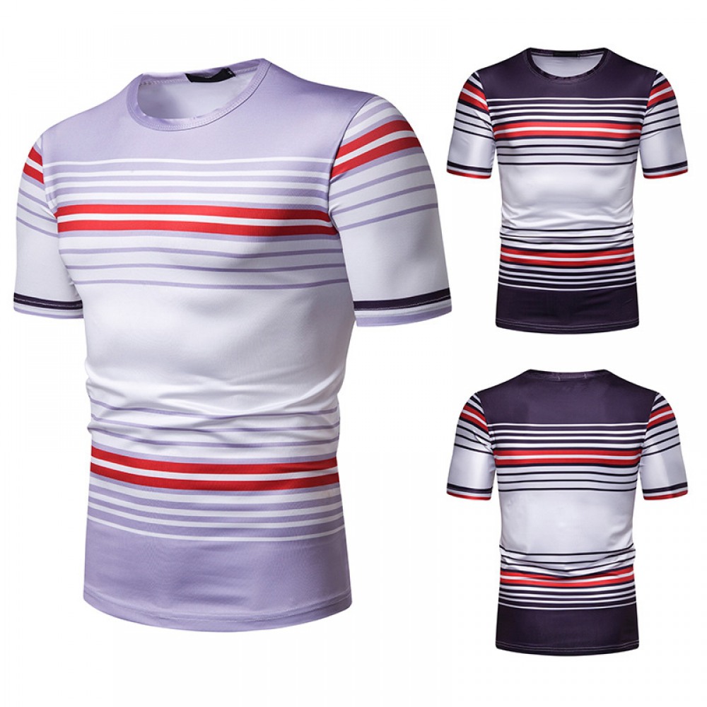 New Summer Men's Short-Sleeved T-Shirt Contrast Striped Slim Casual T-Shirt